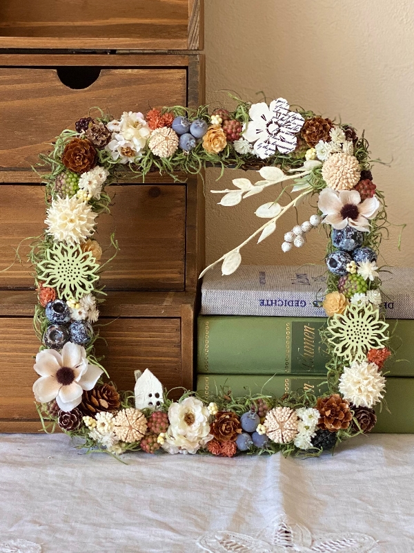 外国の童話に出てきそうな、森のなかの一軒家をイメージしたリースを作りました。