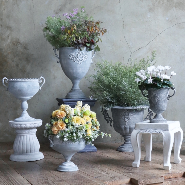 クラシカルな雰囲気を持つ、アイアン製の鉢。