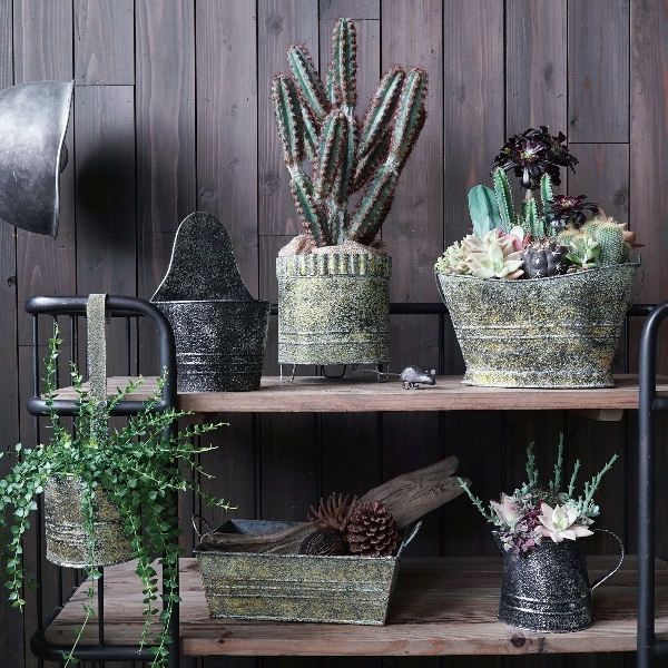 メタリックカラーのブリキ製の鉢。