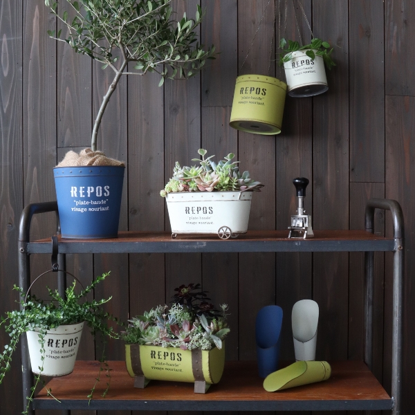 ビタミンカラーが目を惹くカジュアルなブリキ製の鉢。