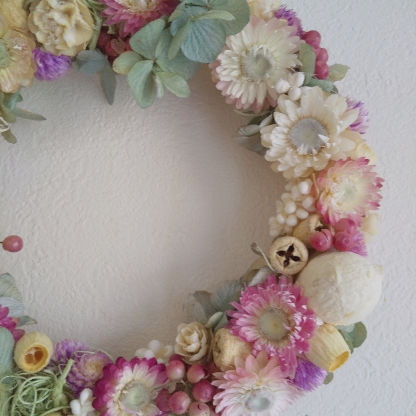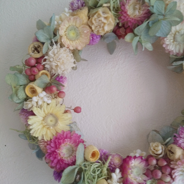 花雑貨 Mesfavorisでは、年間を通じてこの花材を使ったリースをたくさん作成しますが、