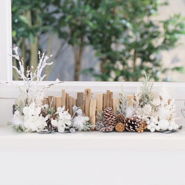クリスマスの魔法を感じる季節がやってきました。ホワイトクリスマスは、雪の純粋な美しさを讃え、その魔法をアレンジメントに閉じ込めた特別な作品です。