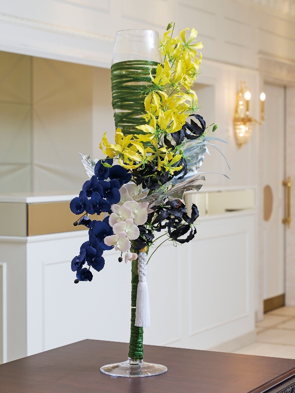 リーフリボンでガラス部分を巻いてすっきりとした和を表現。