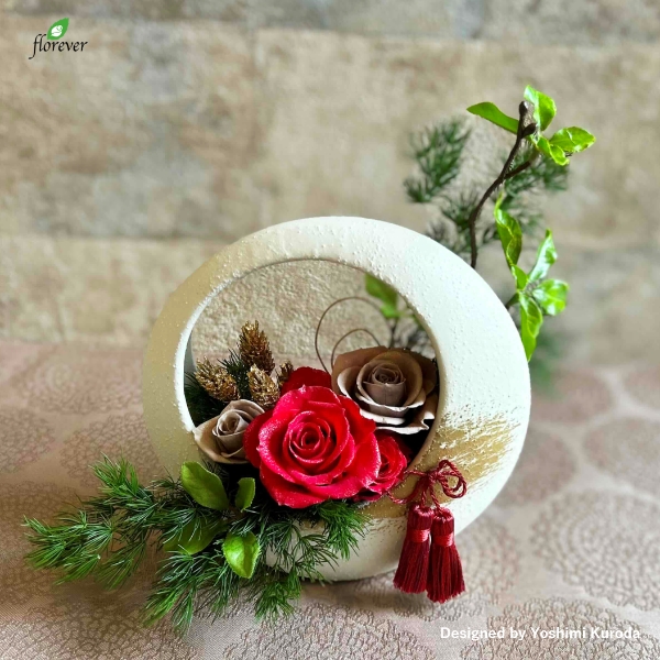 新鮮な生花の中から加工に適する花を厳選し、独自の技術で加工を施すことにより、生花により近い感触と透明感を実現し、花弁が肉厚でしなやかなのが特徴です。