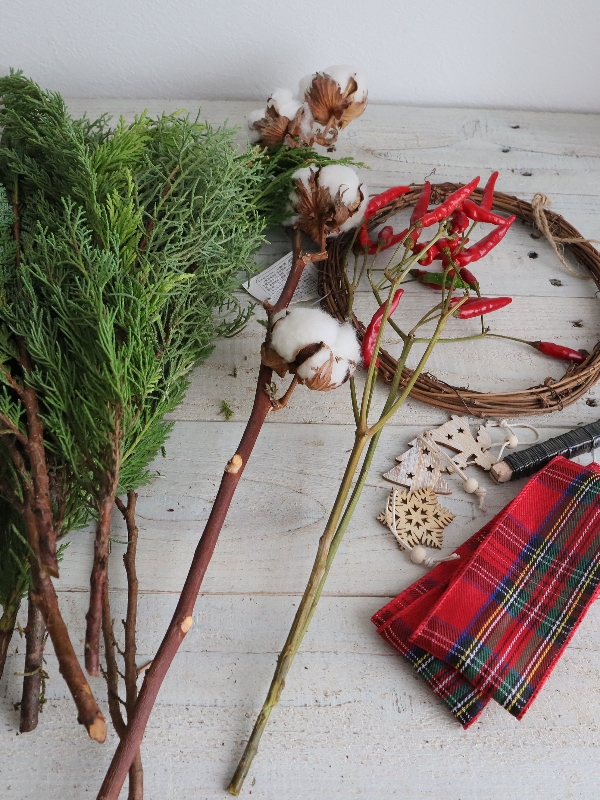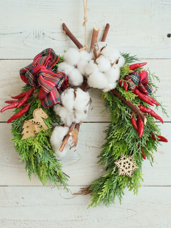 コニファーとコットンの馬蹄型リース【2023キット販売あり】