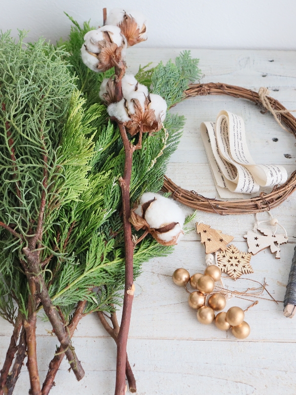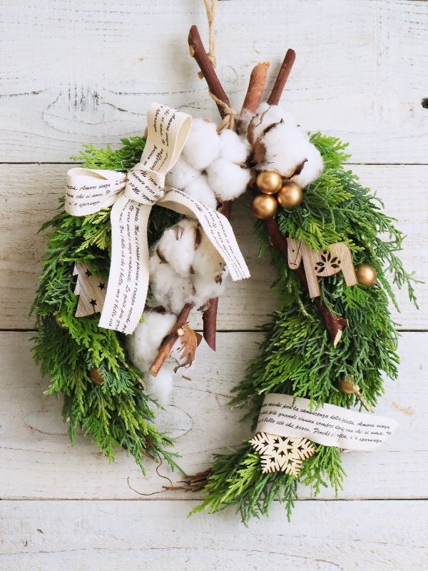 コニファーとコットンの馬蹄型リース【2023キット販売あり】