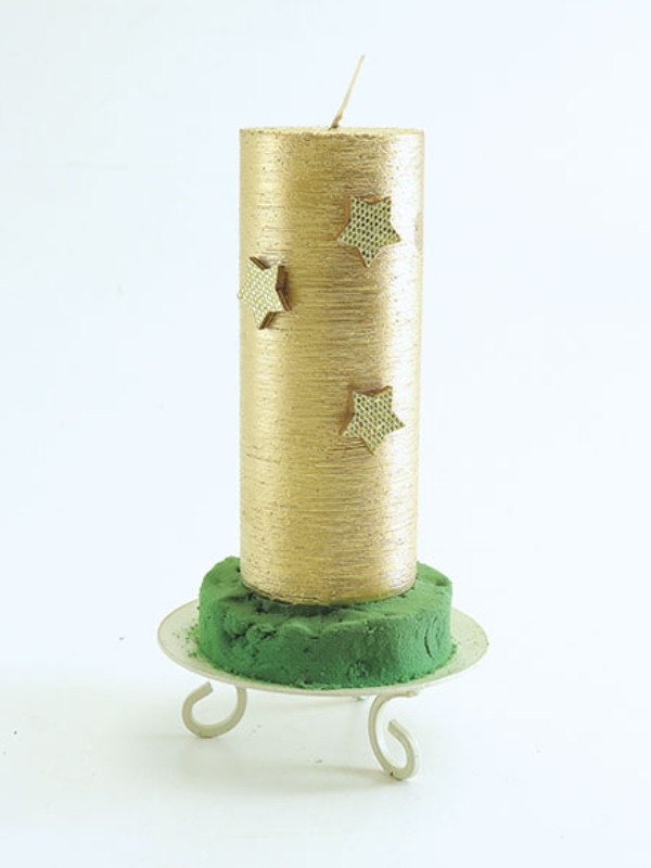 1 足付きキャンドルトレイにフォームをセットしてキャンドルを接着。