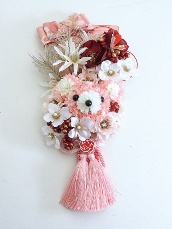 花テディベア®で装うインテリア風羽子板のお正月飾り。新年だけでなく、初節句などの晴れの日を飾るアイテムとしても人気です。