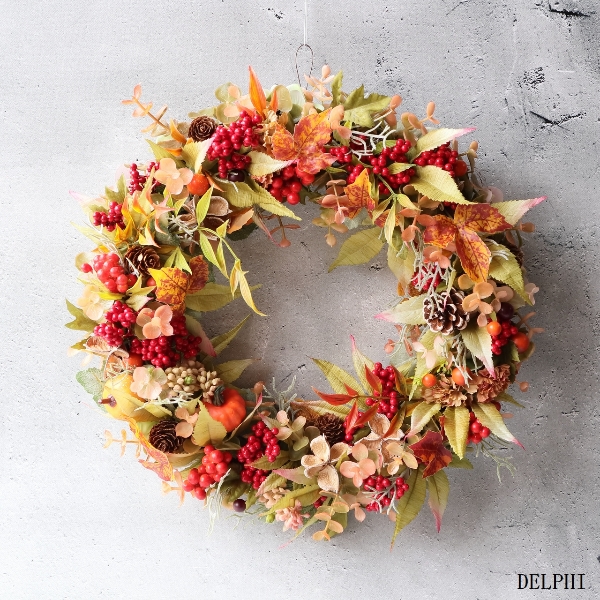 色付き始めた葉っぱや実たちを集めた秋のリース。