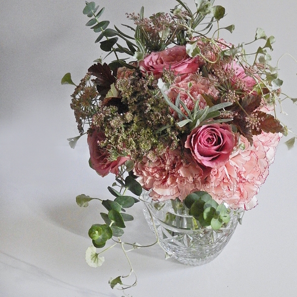 カーネーションをベースに、アンティークな色合いでシックにまとめたブーケです。