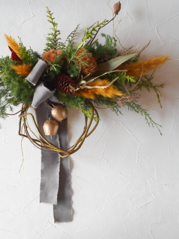 ほっこり温かみのあるブラウンカラーを男前なリースに。