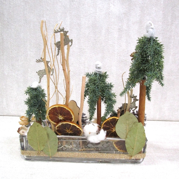 「ガラスのクリスマスアレンジメント」は、透明なガラスが洗練された雰囲気を醸し出す素敵なデザインです。