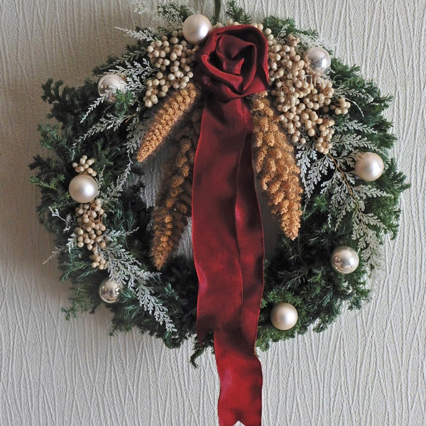 リボンの素材や結び方にこだわり、クラシックな雰囲気に仕上げました。