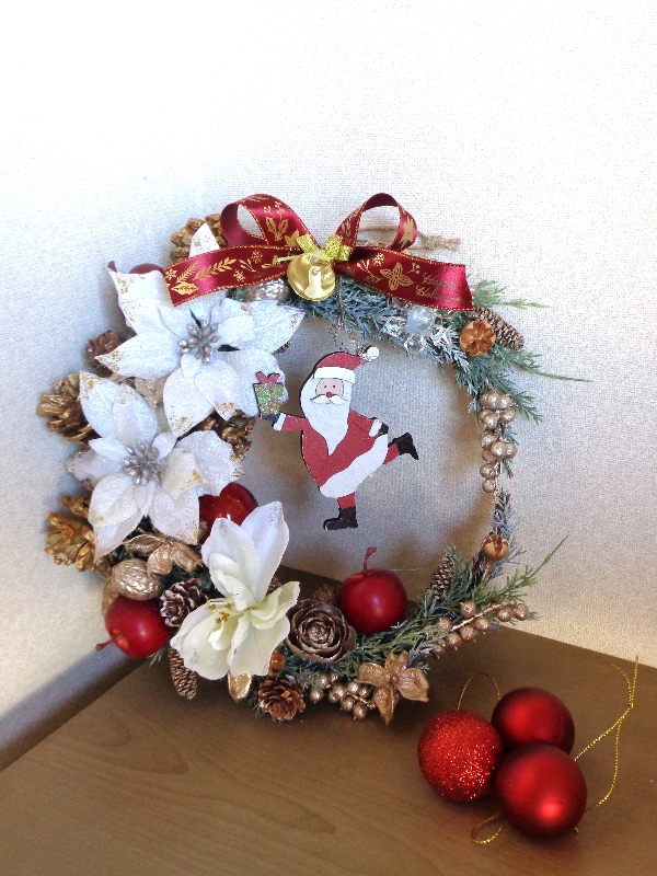 普段お世話になっているお店の方に差し上げたクリスマスリースです。