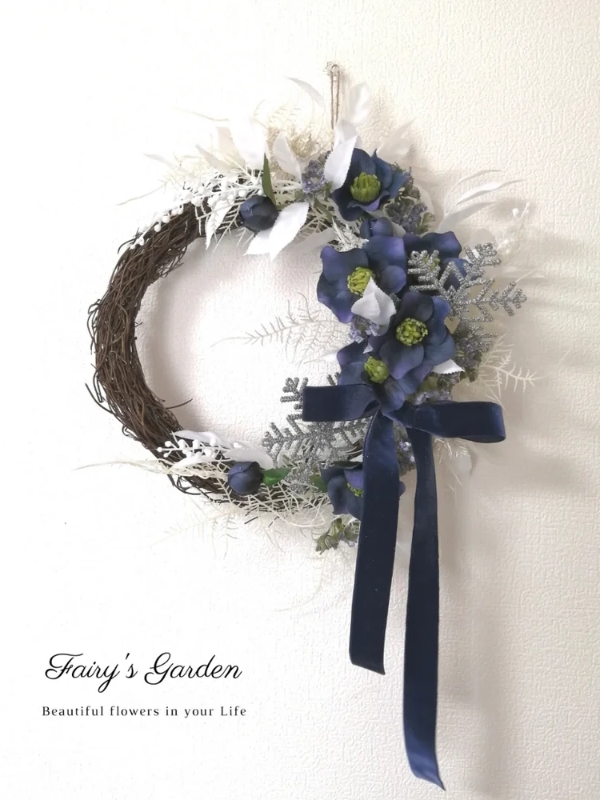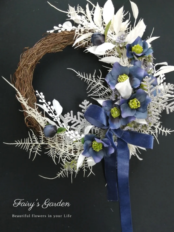 今年の流行色、濃青のクリスマスローズが厳かに映えます。