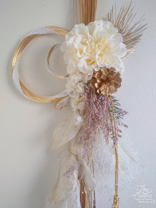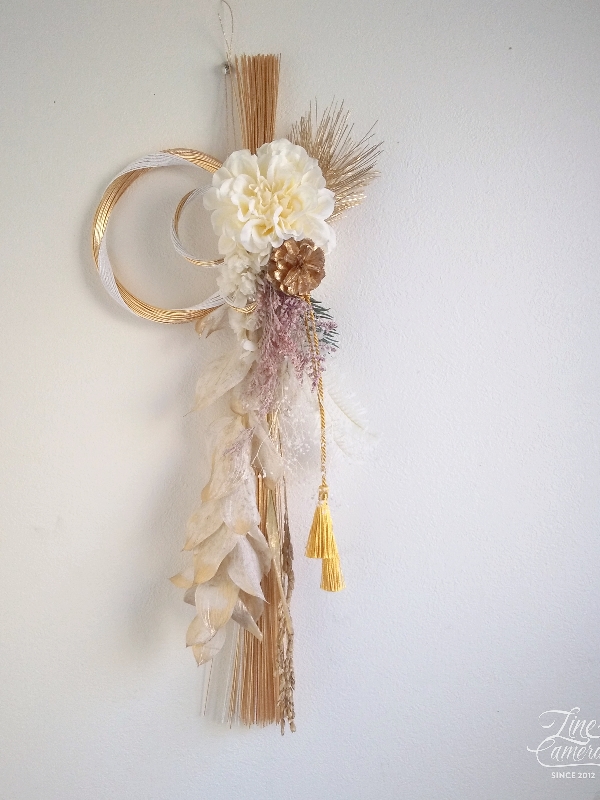 キリッとしたゴールドベースのしめ飾りに、