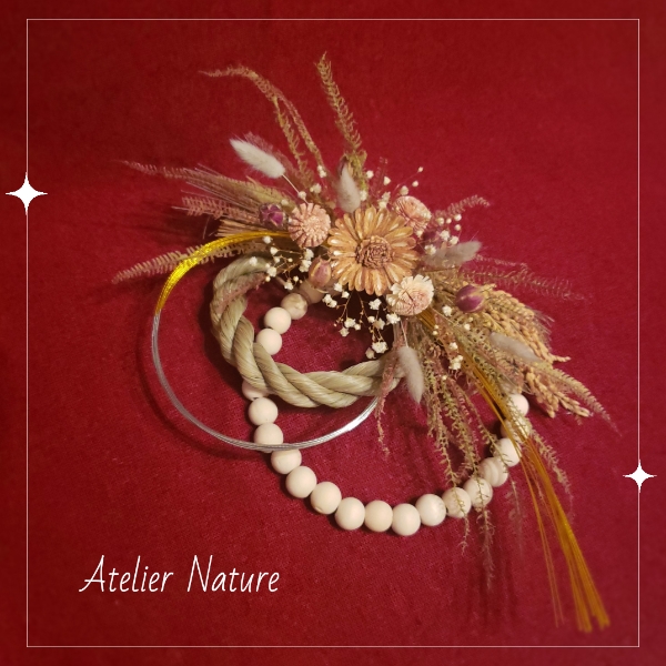 木製ビーズリース、しめ縄、金銀ミックス水引で