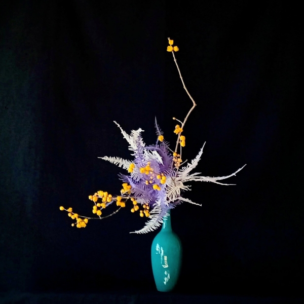 ふっくらと丸みを帯びた黄色いお花が甘い香りを放つロウバイ。軽やかで表情豊かな着色ヤマシダとともにいけました。お部屋が良い香りに包まれ、思わず深呼吸したくなります。