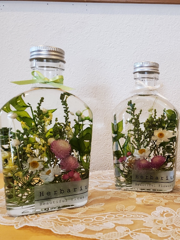 花かんざしや千日紅の可愛さを長く楽しめるようにハーバリウムにしました。
