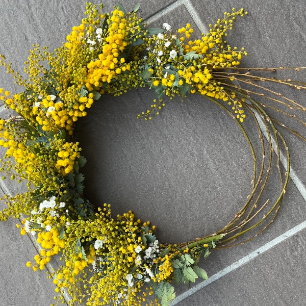 玄関に華々しくかざるというよりも、リビングや、廊下、食卓テーブルの上、寝室のドアなど、生活する中でふと目にした瞬間に優しい気持ちになれるようなさりげないお花飾りを目指しています