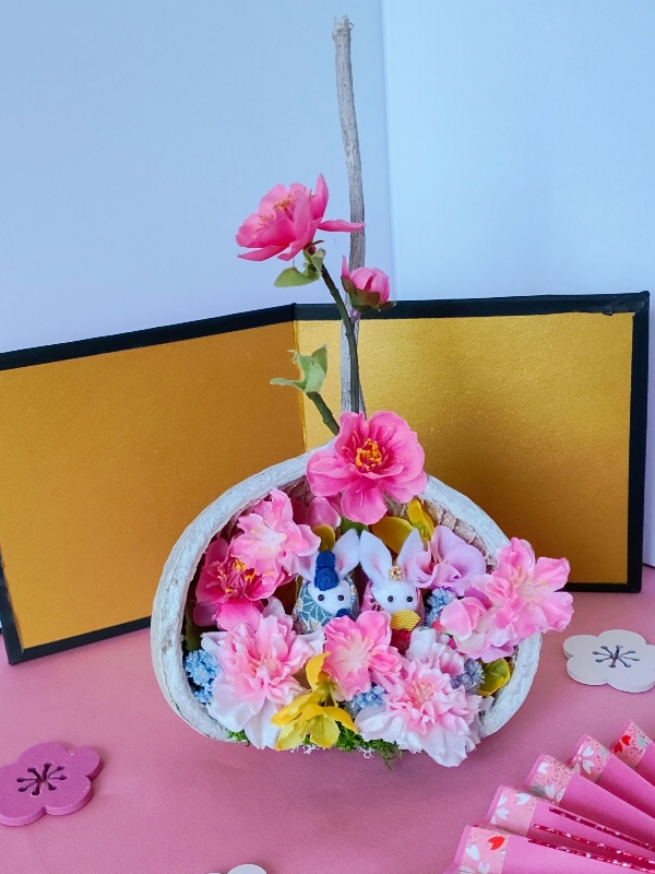 小さな木の実のフォルムに合うサイズの雛人形を見付ける事ができなかったので、手作りの雛人形を作りました。