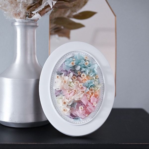 フレームアレンジはフローリスト/フローラルコラージュ作家の池田ちなみさんにデザインしていただきました。