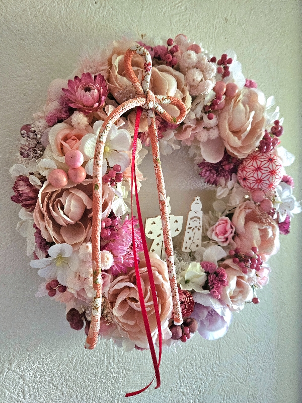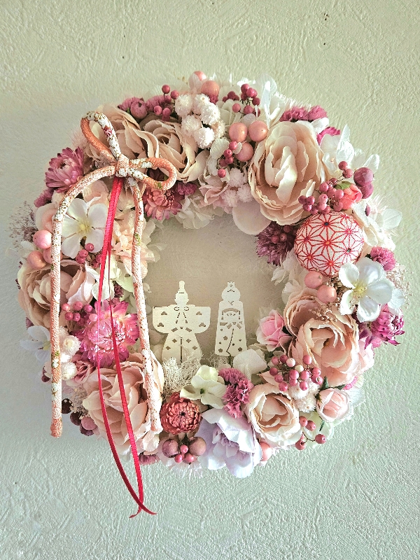 ひな祭りをモチーフにしたふんわりボリュームたっぷりのリース。