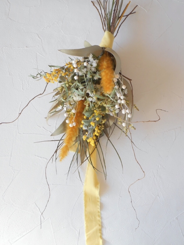 ミモザのスタイリッシュブーケスワッグ