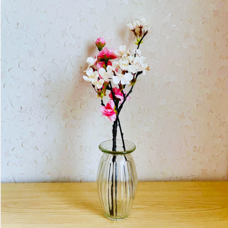 室内で春の訪れを楽しめるお花と花瓶のセットです