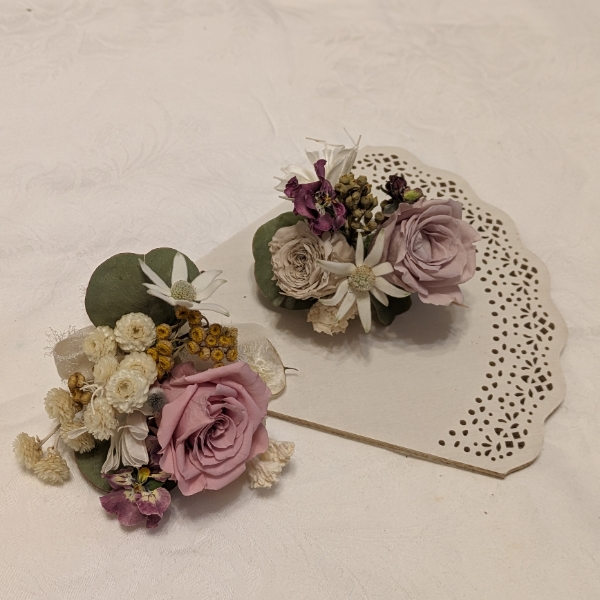 バラは、プリザーブドフラワーで、その他の花は、ドライフラワーです。