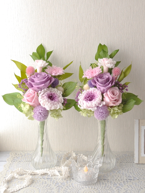 お仏壇に備え付けの花器に挿し込むだけの仏花です。