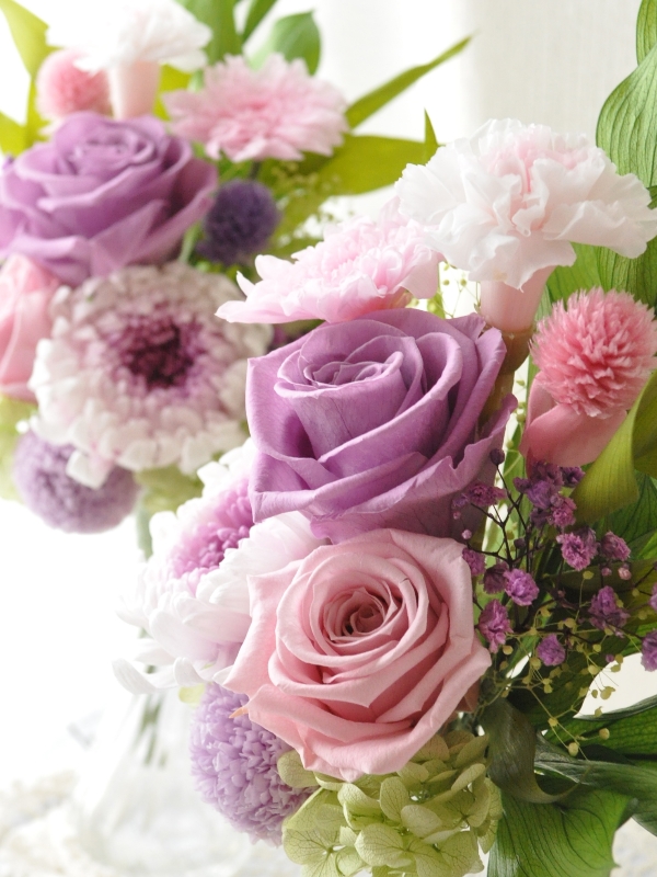 ショップでは、プリザーブドフラワーを中心につまみ細工や水引、レジンなどで、お花モチーフの雑貨やアクセサリーを販売しています。