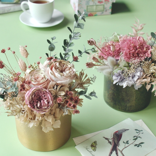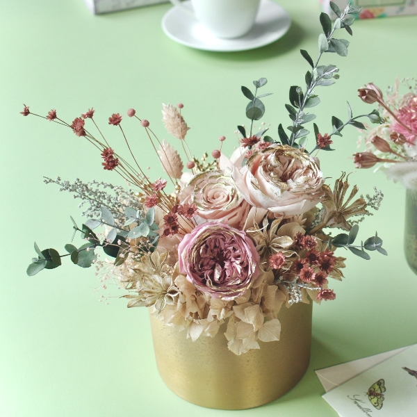 ゴールドのペイントが華やかなリュクスシリーズを使ったアレンジ。