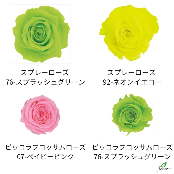 新鮮な生花の中から加工に適する花を厳選し、独自の技術で加工を施すことにより、生花により近い感触と透明感を実現し、花弁が肉厚でしなやかなのが特徴です。