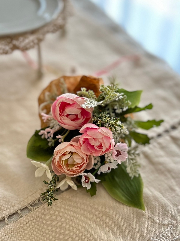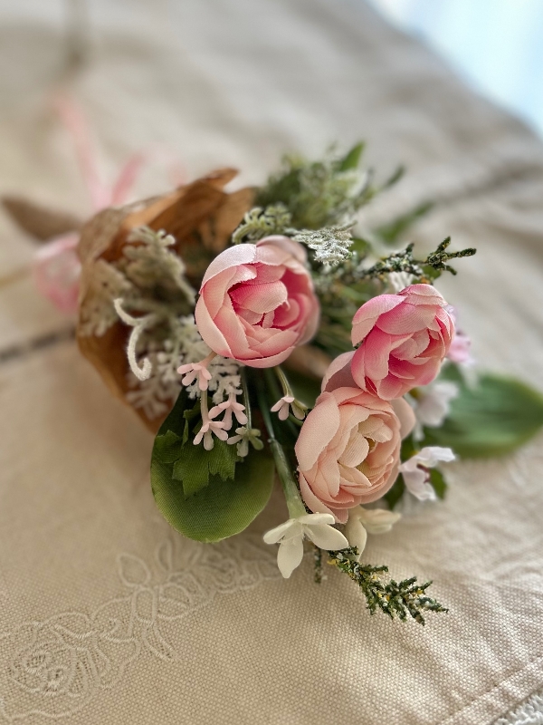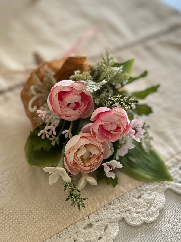 小さめのラナンキュラスをミニブーケにしました。壁掛けとして飾ることもでき、ちょっとしたプレゼントに良いと思います。