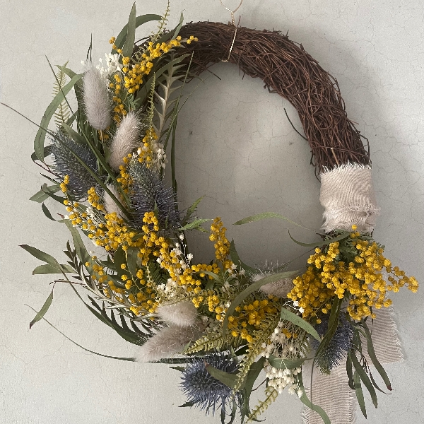 ミモザを使ったナチュラルなリースです。