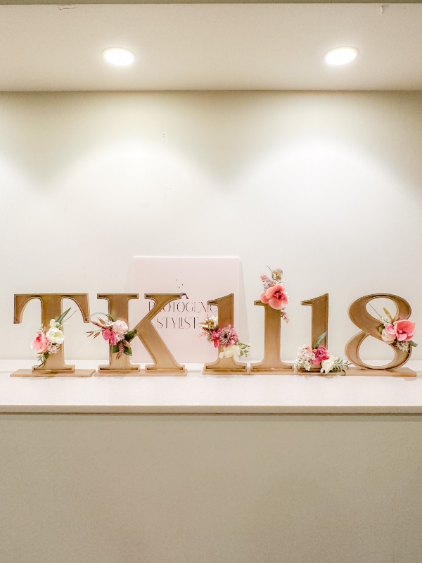 アルファベットサインとナンバーサインオブジェを使ったウエディングのディスプレイイメージ