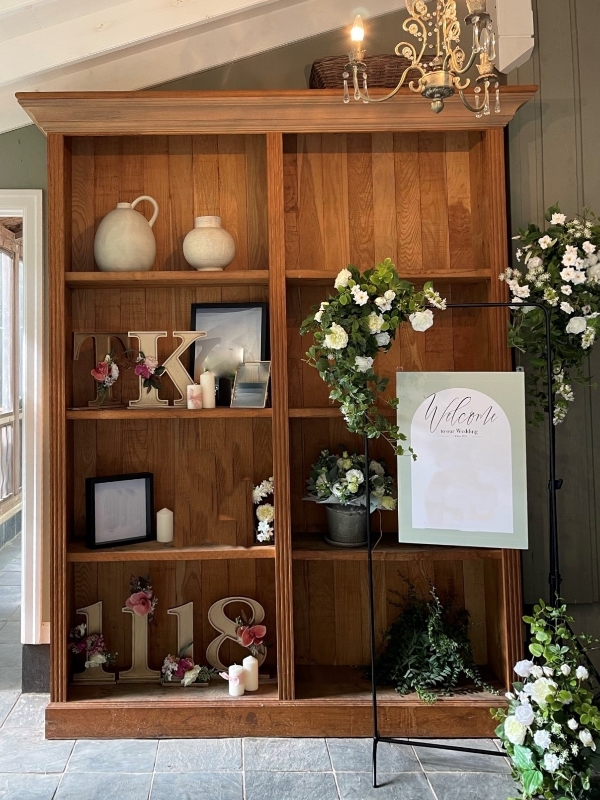アルファベットとナンバーオブジェを使ったウェディングディスプレイイメージ。
