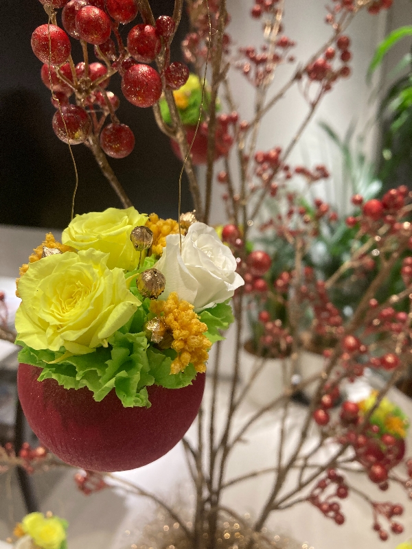 2023年12月KITTE丸の内で開催された「プリフェスタ2023」(主催:一般社団法人プリザーブドフラワー全国協議会)のデモンストレーションでの作品です。
