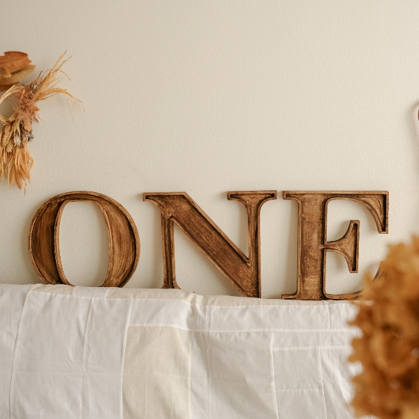 アルファベットサインベースを使った秋のバースデーフォトのディスプレイイメージ