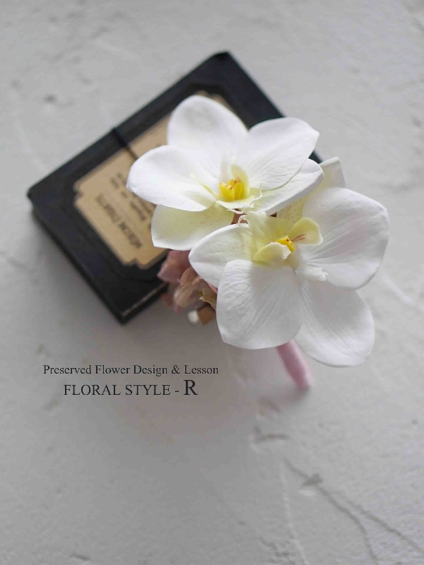 こちらのコサージュは、上質な胡蝶蘭のアートフラワーを贅沢に2輪使い、