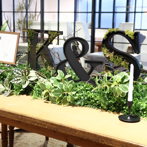 アルファベットサインベースを使ったグリーン植栽ディスプレイ