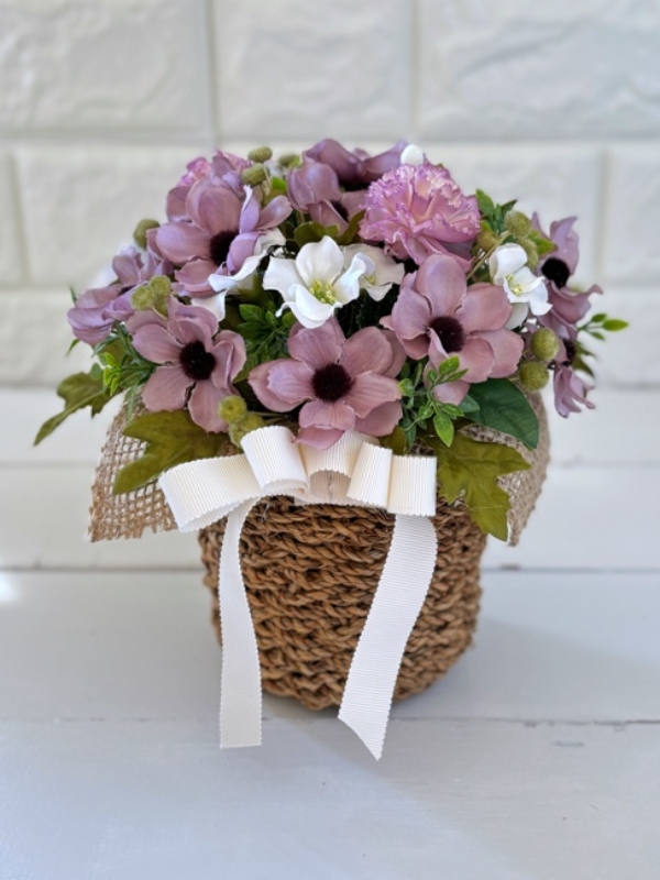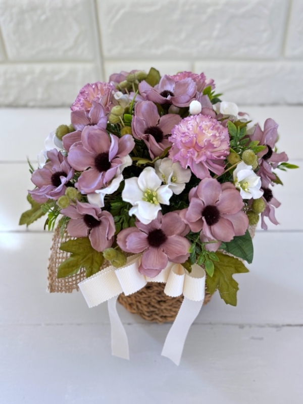 小さな籠のアレンジでちょこんとお部屋に飾っていただき、穏やかな優しい時間を過ごしていただけたら幸いです