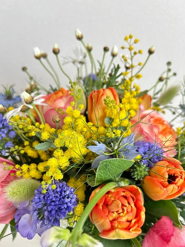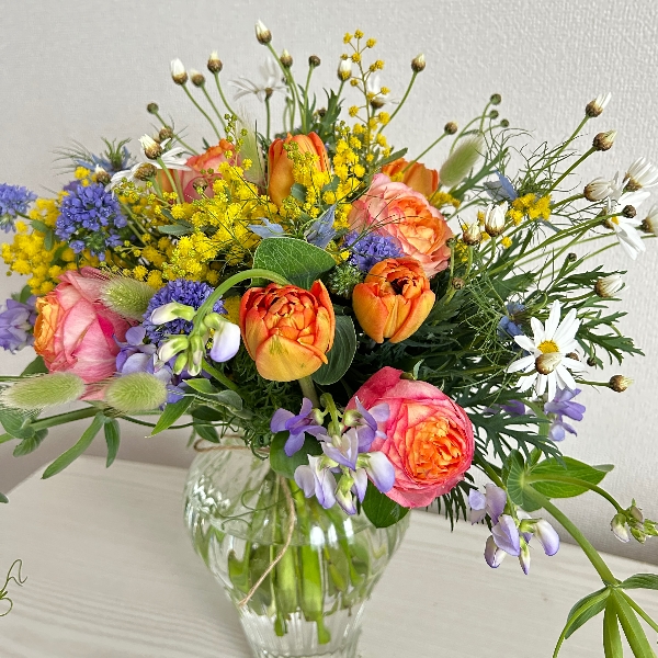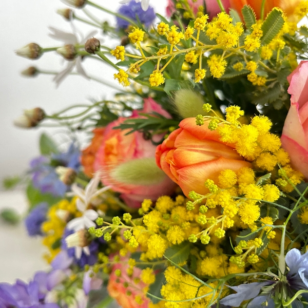 元気が出る黄色・オレンジに青系のお花を入れて