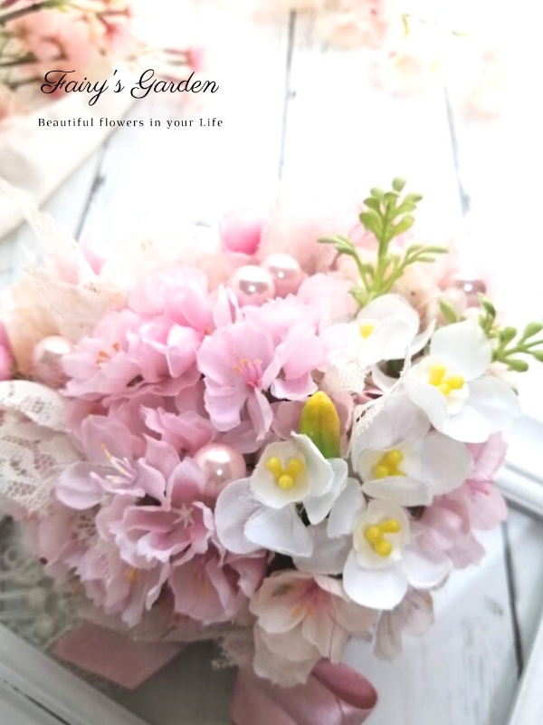 2色の桜にパールとレースをちりばめて。