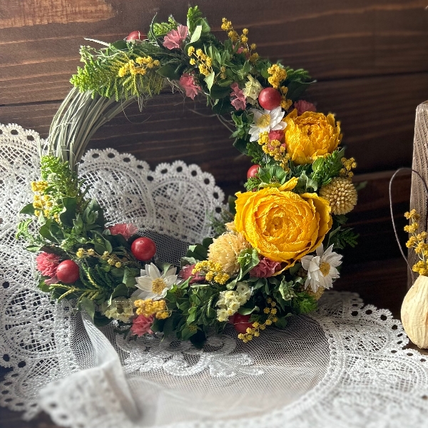 ドライフラワーのラナンキュラス ミモザ