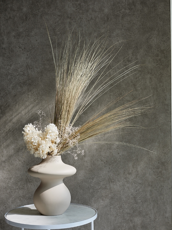 すらっと伸びるレインボーグラスが目を引くアレンジメント。ディスプレイや店舗装飾、ご自宅のインテリアに。