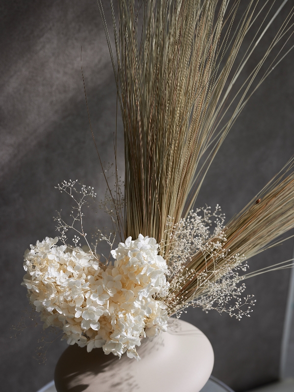 アジサイはステム付きのためワイヤリングなしでそのまま飾ることができます。