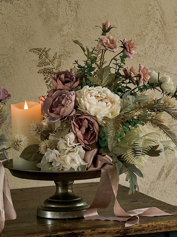 ベースのシュタールコンポートの風合いに合わせローズをメインにアンティーク調のトーンがしっとりと上品なアレンジメントです。
