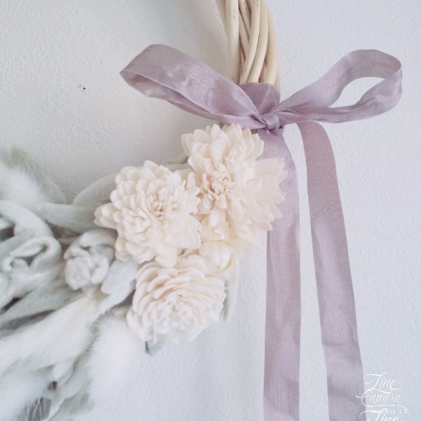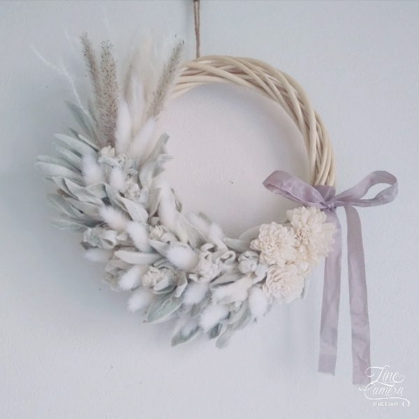 ラグラス(野うさぎのしっぽ)とラムズイヤー(子羊のお耳)を使ったふわふわなリースです!